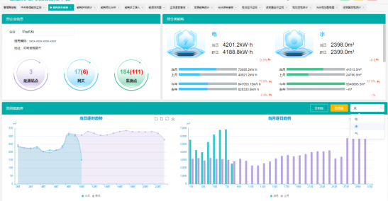 針對校園水、電、氣等各類接入能源進(jìn)行統(tǒng)計(jì)分析,包含同比分析、環(huán)比分分析、損耗分析等。了解用能總量和能源流向。