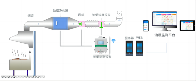 設(shè)備的工作情況和油煙的凈化與排放情況。與傳統(tǒng)監(jiān)測(cè)手段相比,它具有高度的實(shí)時(shí)性、同步性、造價(jià)低、布點(diǎn)靈活、施工快捷等一系列優(yōu)勢(shì)。