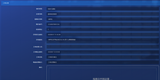 后臺(tái)根據(jù)測(cè)點(diǎn)設(shè)置的濃度閾值以及門(mén)限時(shí)間在隱患巡查中產(chǎn)生對(duì)應(yīng)的報(bào)警信息,并在首頁(yè)進(jìn)行鈴鐺和語(yǔ)音提示。企業(yè)用戶(hù)對(duì)隱患進(jìn)行確認(rèn),確認(rèn)工單派發(fā)對(duì)象,工單截至期限,以及工單任務(wù)描述;運(yùn)維人員確認(rèn)工單內(nèi)容并對(duì)隱患進(jìn)行處理,填寫(xiě)處理結(jié)果詳情,上傳現(xiàn)場(chǎng)圖片等附件或進(jìn)行二級(jí)派發(fā);相關(guān)企業(yè)用戶(hù)可在