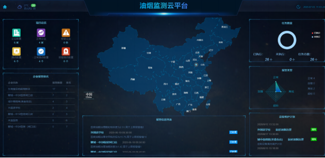 顯示告警企業(yè)數(shù)量,告警率,包括超標(biāo)、在線(xiàn)率統(tǒng)計(jì)。