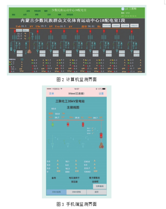障只能斷電搶修,嚴(yán)重影響用電可靠性。通過監(jiān)控中心計(jì)算機(jī)或手機(jī)客戶端可隨時(shí)在線監(jiān)測(cè)設(shè)備運(yùn)行狀況,自診斷設(shè)備的異常運(yùn)行,發(fā)現(xiàn)配電設(shè)備異常后,通過手機(jī)短信或APP推送報(bào)警信息,提醒用戶及時(shí)處理,保證了供電可靠性。