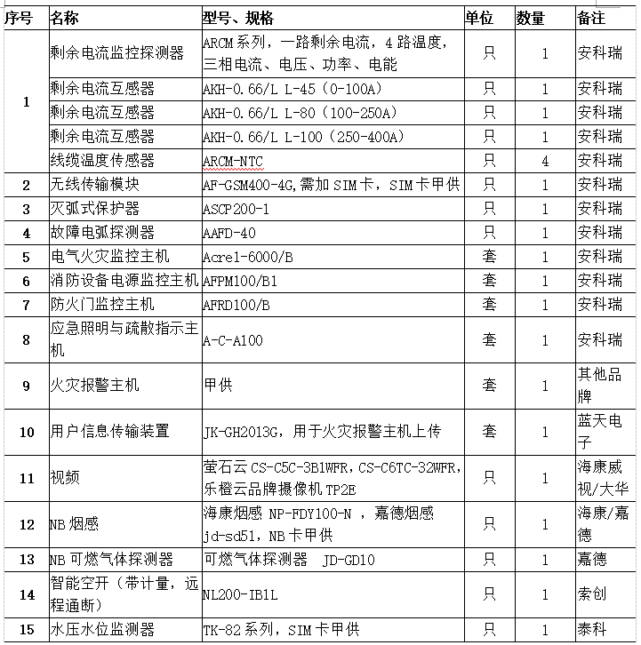 注:以下配置為針對(duì)1個(gè)回路選型,其中剩余電流互感器應(yīng)根據(jù)現(xiàn)場(chǎng)回路電流大