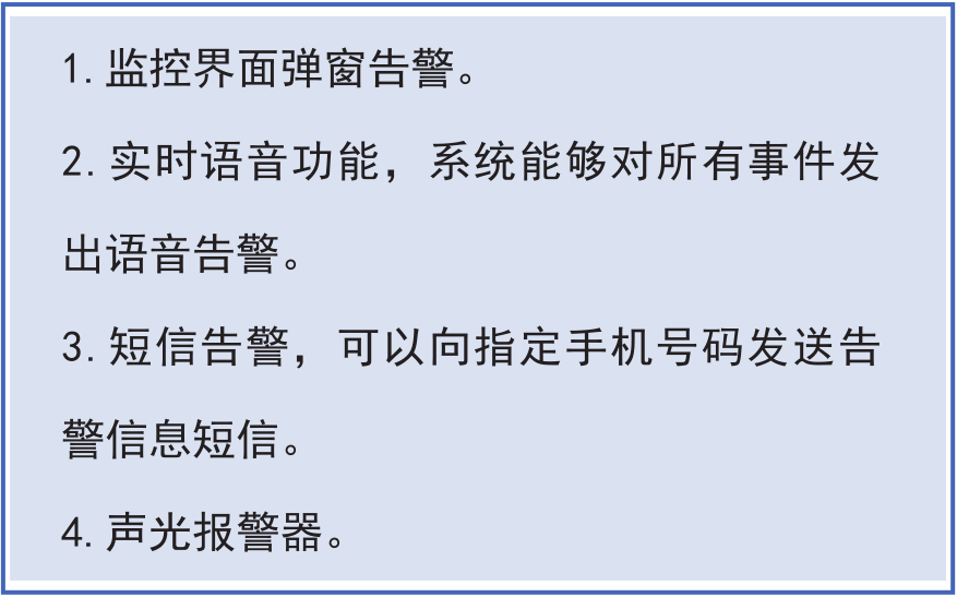 安科瑞智能配電室綜合監(jiān)控系統(tǒng)具有實(shí)時(shí)告警功能,系統(tǒng)能夠?qū)ε潆娛覝囟取穸?、有害氣體、設(shè)備故障或通信故障等事件發(fā)出告警。告警方式如右圖所示: