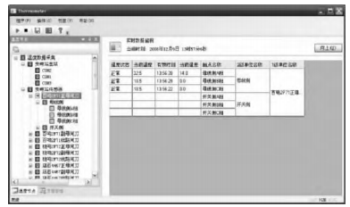 在溫度運(yùn)行狀態(tài)監(jiān)視頁面(見圖5),可以對當(dāng)前配置的所有傳感器(對應(yīng)實(shí)際的溫度點(diǎn))的溫度與運(yùn)行狀態(tài)進(jìn)行監(jiān)視與顯示。顯示的信息包括在線離線狀態(tài)、超溫警告、溫升、實(shí)時(shí)溫度、溫度變化率和電池電壓等。雙擊某個(gè)傳感器信息,還可以得到它的詳細(xì)信息界面。