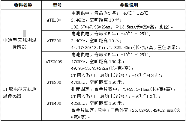 無線溫度傳感器共有5種,分別對應(yīng)螺栓固定、表帶固定、扎帶捆綁、合金片固定等安裝方式。針對不同的變電站要求,可根據(jù)傳感器供電方式以及安裝位置的不同,考慮安裝方便的因素,選擇相匹配的傳感器。