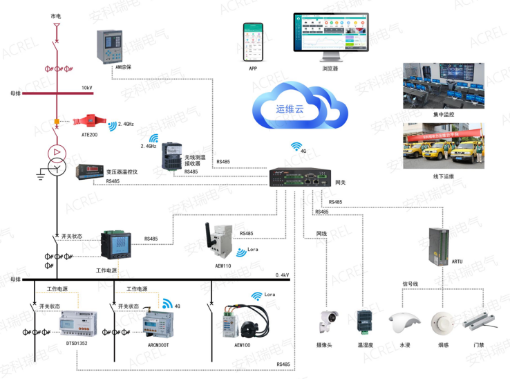 AcrelCloud-1000電力運(yùn)維云平臺(tái)采用多功能電力儀表、無(wú)線通信、邊緣計(jì)算網(wǎng)關(guān)及大數(shù)據(jù)分析技術(shù),通過(guò)智能網(wǎng)關(guān)采集現(xiàn)場(chǎng)數(shù)據(jù)并存儲(chǔ)在本地,再定時(shí)向云平臺(tái)推送數(shù)據(jù)。平臺(tái)可同時(shí)接入數(shù)以千計(jì)的用戶變電站數(shù)據(jù)。平臺(tái)采集的數(shù)據(jù)包括變電所電氣參數(shù)和環(huán)境數(shù)據(jù),包括電流電壓功率、開(kāi)關(guān)狀態(tài)、變壓器溫度、環(huán)境溫濕度、浸水、煙霧、視頻、門(mén)禁等信息,有異常發(fā)生10S內(nèi)通過(guò)短信和APP發(fā)出告警信號(hào)。平臺(tái)通過(guò)手機(jī)APP下發(fā)運(yùn)維任務(wù)到指定人員手機(jī)上,并通過(guò)GPS跟蹤運(yùn)維執(zhí)行過(guò)程進(jìn)行閉環(huán),提高運(yùn)維效率,即時(shí)發(fā)現(xiàn)運(yùn)行缺陷并做消缺處理。