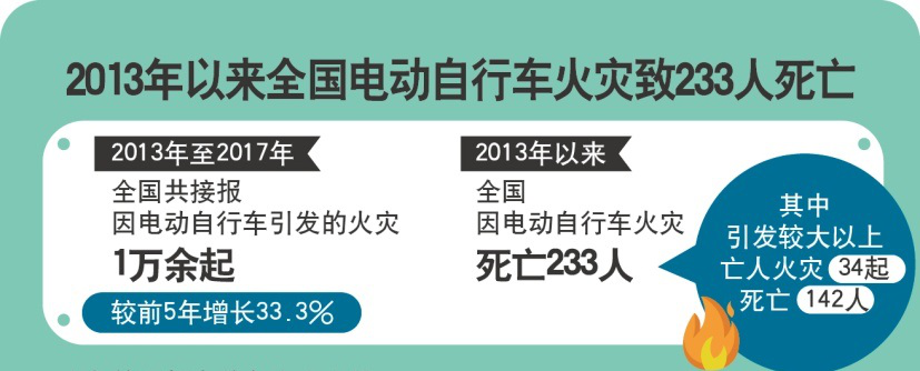 年全國共接報因電動自行車引發(fā)火災(zāi)