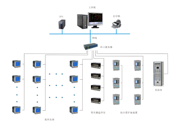 監(jiān)控范圍為: 10KV站包含第三方綜合保護裝置2臺模擬屏1臺;變壓器溫控儀、多功能儀表、直流屏通過485總線接入本變電所內(nèi)采集器,進而通過網(wǎng)絡傳輸至后臺,從而在監(jiān)控主機上實現(xiàn)總線上儀表與監(jiān)控主機的數(shù)據(jù)連通。如下圖所示:站控管理層、網(wǎng)絡通訊層和現(xiàn)場設備層。