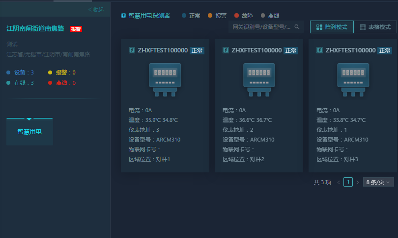 5.對路燈回路的漏電流和導線溫度進行監(jiān)測,如果漏電過大,線纜溫度過高則進行預警或報警;