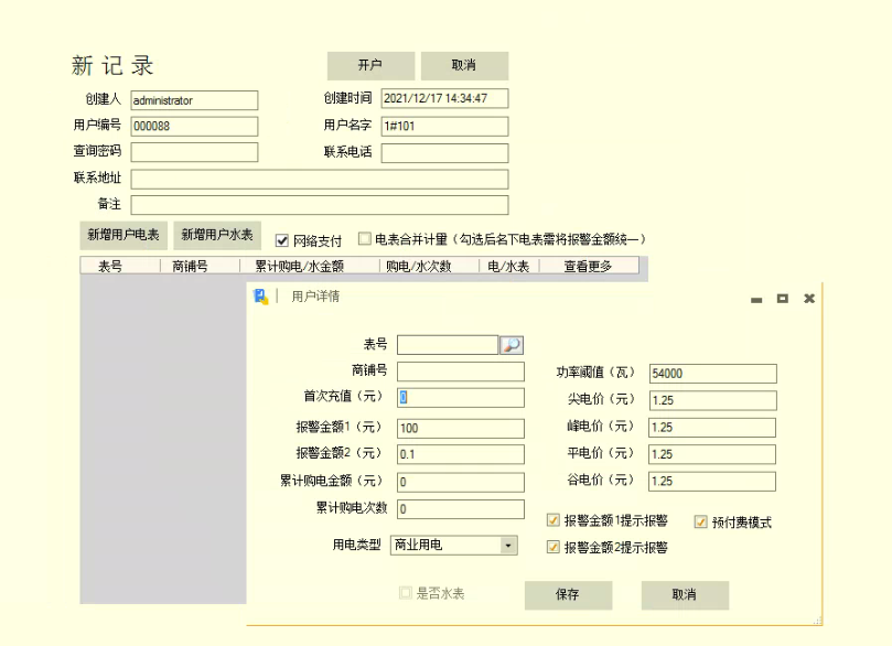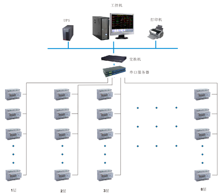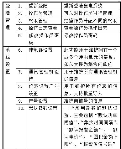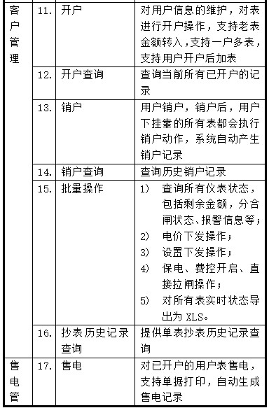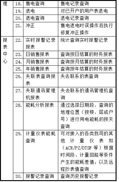 現(xiàn)場設備層主要為:遠程預付費電度表。這些裝置分別對應相應的一次設備安裝在電氣柜內(nèi),這些裝置均采用RS485通訊接口,通過現(xiàn)場MODBUS總線組網(wǎng)通訊,實現(xiàn)數(shù)據(jù)現(xiàn)場采集。 網(wǎng)絡通訊層主要為:通訊服務器,其主要功能為把分散在現(xiàn)場采集裝置集中采集,同時傳至站控層,完成現(xiàn)場層和站控層之間的數(shù)據(jù)交互。 站控管理層:設有高性能工業(yè)服務器、顯示器、UPS電源、打印機等設備。監(jiān)控系統(tǒng)安裝在服務器上,集中采集顯示現(xiàn)場設備運行狀況,以人機交互的形式顯示給用戶。 智能儀表現(xiàn)場連接示意 現(xiàn)場智能裝置(遠程預付費電度表)以手拉手方式通過屏蔽雙絞線(RVVSP2*1.0)進行通訊連接,每根總線連接智能儀表數(shù)量在32只以內(nèi),不同種類的智能裝置連接在不同的總線上,然后將數(shù)據(jù)上傳至采集器,進而將數(shù)據(jù)上傳至監(jiān)控主機。具體連接示意圖如下所示: 3 系統(tǒng)功能 整個系統(tǒng)軟件設計分為三個大塊,分別是集中抄表服務系統(tǒng),遠程預付費電能管理系統(tǒng),以及用戶查詢系統(tǒng)。 集中抄表服務程序常年運行,不間斷定時對所有表進行遠程抄表;遠程預付費系統(tǒng)包含所有開戶、售電、遙控及報表功能;用戶查詢機系統(tǒng)用于用戶查詢個人信息、充值和用電情況;另外還可配置手機端查詢網(wǎng)站,可用于用戶在手機網(wǎng)站終端上實時查詢個人信息、充值、遠程控制及每日用電情況,如果條件滿足,還支持用戶使用支付寶銀聯(lián)等方式遠程自助購電。 主要特點如下: u 快速配置,即裝即用:將電表和通訊管理機配置導入系統(tǒng)就可以使用; u 遠程集中抄表:免去人工抄表,電表狀態(tài)實時性最高可精確到3分鐘以內(nèi); u 支持單獨計價、多費率、階梯電價:可對每塊電表單獨設置電價、費率和階梯電價; u 遠程售電:財務集中管理,電量實時下發(fā),并比對充值次數(shù)防止作弊; u 數(shù)據(jù)安全:網(wǎng)絡數(shù)據(jù)傳輸采用金融級的3DES加密算法,防止數(shù)據(jù)作弊竊電; 手機短信提醒:當金額不足或金額欠費,共三級u 預警,都可及時短信通知商戶; u 遠程控制:可對任意一塊電表執(zhí)行遠程拉閘或保電等一系列遠程控制操作,方便管理; u 能耗分析及查詢:用戶和管理員都可查詢預付費表或各類接入的計量儀表每天的用能狀況; u 個人手機查詢網(wǎng)站:支持手機端用戶自主購電,自主查詢。 傳統(tǒng)的IC卡預付費售電管理系統(tǒng)實現(xiàn)了先交費后用電的管理模式,但由于抄收電表數(shù)據(jù)依賴于購電卡,用戶用電數(shù)據(jù)滯后于發(fā)生時間,不僅需要人工抄表,也無法有效進行用電管理、監(jiān)控和實時控制。 利用遠程預付費電能管理系統(tǒng),無需IC卡,可以實現(xiàn)計算機遠程集中抄表、實時監(jiān)控、遠程充值和遠程控制,再通過預警信息和短信通知,以及手機網(wǎng)站,物管部門即可完成整個抄表、收費、控制和核查工作,實現(xiàn)高度信息化和自動化,大大提高用電營銷管理效率和水平,節(jié)約人力物力的同時,也提高了經(jīng)濟效益,同時還具有防信息泄露防竊電的安全功能。 ①集中抄表服務系統(tǒng) 集中抄表服務程序包含三大模塊,除了常年運行的定時對所有儀表進行集中遠程抄表以外,還集成了報警短信發(fā)送服務,能將電費金額預警和欠費預警自動生成手機短信自發(fā)送給對應的用戶,該功能需要與硬件短信貓配合使用。系統(tǒng)默認半小時對所有表進行一次遠程集中抄表,時間間隔支持個性化配置。 ②遠程預付費電能管理系統(tǒng) 本系統(tǒng)分為五大模塊,分別是操作員登陸模塊、系統(tǒng)配置模塊、用戶(商鋪)管理模塊、售電管理模塊、報表中心模塊,系統(tǒng)大致運行和操作流程如下: 本系統(tǒng)所有的報表及記錄查詢,都支持excel格式導出的功能。 1.登陸管理:管理操作員賬戶及權(quán)限分配,查看系統(tǒng)日志等功能; 2.系統(tǒng)設置:對建筑、通訊管理機、儀表及默認參數(shù)進行配置; 3.用戶管理:對商鋪用戶執(zhí)行開戶、銷戶、遠程分合閘、抄表導出及記錄查詢等操作; 4.售電管理:對已開戶的表進行遠程售電、退電、沖正及記錄查詢等操作; 5.報表中心:提供售電財務報表、用能報表、報警報表等查詢。