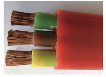 電線電纜主要包括普通電線電纜、阻燃電線線纜和阻燃耐火電線電纜。其中,普通電線電纜有包括聚氯乙烯電線電纜、交聯(lián)聚乙烯電線電纜(如圖1)和橡膠電線電纜(如圖2)。特別是橡膠電纜,其優(yōu)點在于能夠承受住極嚴寒環(huán)境的考驗,而且具有非常好的彎曲性,能夠滿足高差較大甚至是垂直敷設要求。同時,橡膠電纜還大多應用于移動電氣設備的電器線路中。交聯(lián)聚乙烯電線電纜的特點是在實際工作過程中,即使發(fā)生燃燒也不會產(chǎn)生有毒氣體,缺點是并不具有阻燃性。因此,交聯(lián)聚乙烯電線電纜大多應用于對環(huán)境清潔度有較高要求的工業(yè)環(huán)境中;麋氯乙烯電線電纜是現(xiàn)階段應用較為廣泛的一種電線電纜,但其缺陷在于一旦發(fā)生燃燒會產(chǎn)生大量有毒氣休,因此不適用于人口密集的場所。