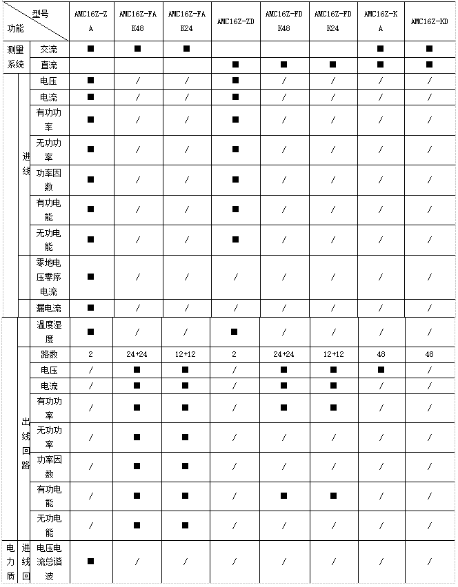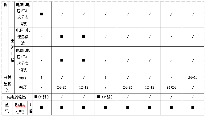遙測(cè):三相電壓、電流、有功功率、無功功率、視在功率、功率因數(shù)、有功電能、無功電能、電纜溫度,系統(tǒng)頻率、零序電流、零地電壓、漏電流、機(jī)柜溫度、機(jī)柜濕度、開關(guān)狀態(tài)、電壓/電流諧波含量、電流/功率;