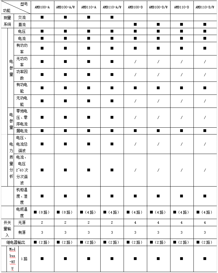 遙測(cè):電壓、電流、功率、電能、電纜溫度、漏電流、機(jī)柜溫度、機(jī)柜濕度、開關(guān)狀態(tài)、電流/功率;
