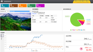 主頁面顯示該建筑的建筑圖片,建筑基本信息,建筑當月分項用電餅圖和各種能源的消耗量。根據所選的建筑,對其建筑圖片進行加載,可以選擇時間查看建筑能耗情況,選擇建筑或時間后自動刷新,默認為當天。