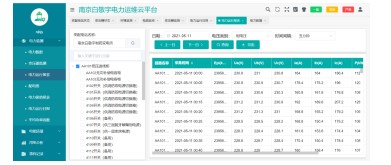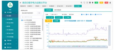 電力數(shù)據(jù)顯示變電所各回路的電力數(shù)據(jù)和曲線,包括電流、相電壓、線電壓、頻率、功率因數(shù)、有功功率、無(wú)功功率、視在功率等參數(shù),并可導(dǎo)出圖表。