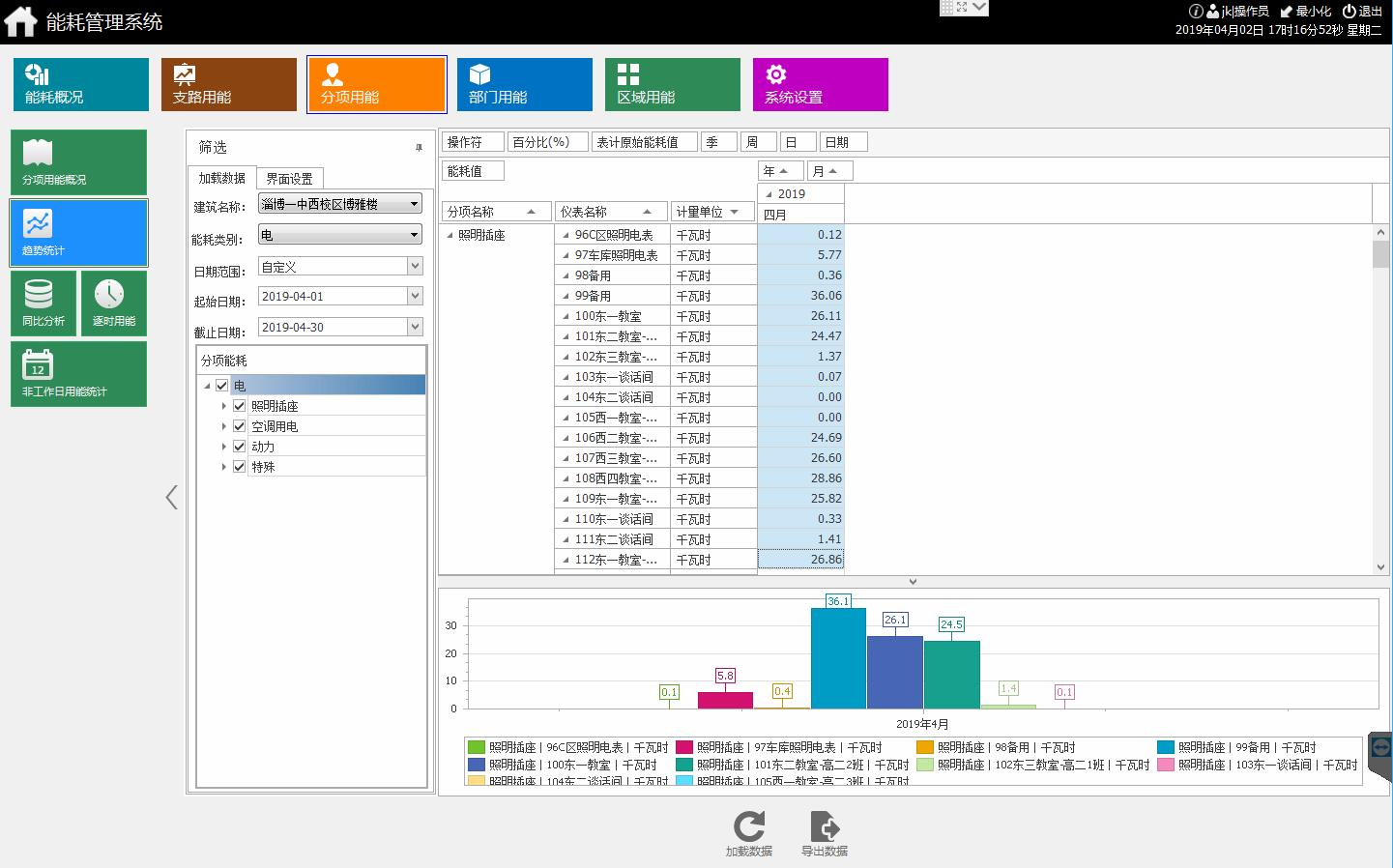 統(tǒng)計(jì)各支路當(dāng)年每月用能及去年同期用能;