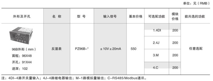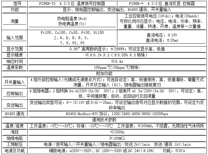 該系列儀表可測量直流電流、直流電壓、各種類型熱電偶、熱電阻、電阻傳感器,帶DC24V電源輸出可給外部兩線式變壓器直接供電。儀表帶有多種可選功能:RS485接口、模擬量輸出、開關(guān)量輸入、繼電器報(bào)警輸出等。