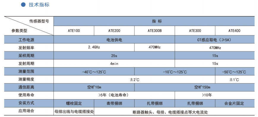 適用于高低壓開關(guān)柜內(nèi)電纜接頭、斷路器觸頭、刀閘開關(guān)、高壓電纜中間頭、干式變壓器、低壓大電流等設(shè)備的溫度監(jiān)測(cè)。