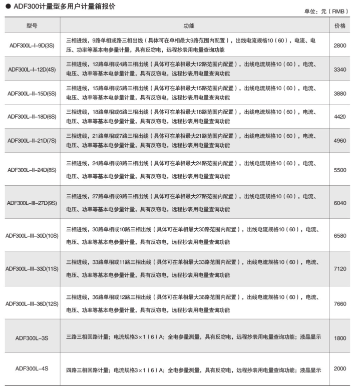 ADF300系列多用戶計量箱是一種電子式智能化多用戶電能表,設計采用一戶一計量方案,具有計量準確度高、戶與戶之間計量互不干擾、集中安裝、集中管理優(yōu)勢。可以同時計量12戶三相、36戶單相、單/三相回路混合用電狀況。