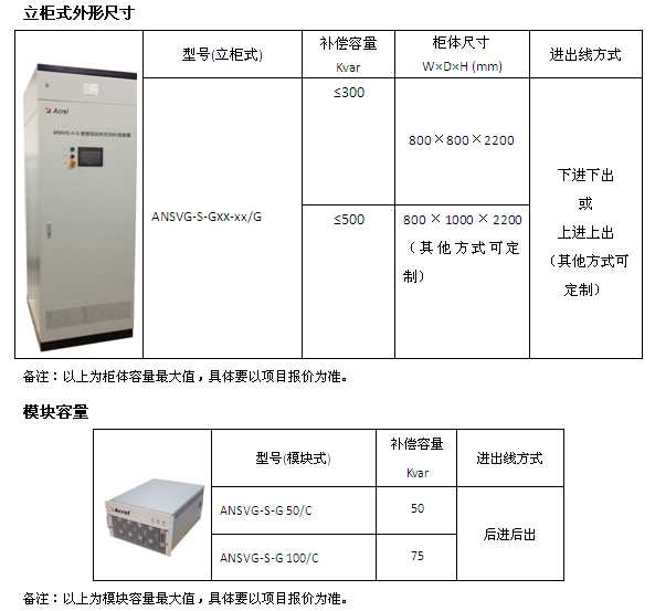 智慧型動態(tài)無功補償裝置主動根據(jù)系統(tǒng)的線性動態(tài)需求,自動調(diào)節(jié)有源及無源模塊的輸出配比,ANSVG-S-G整機主要是由ANSVG-S-G模塊、無源補償電容器(TSC)、液晶顯示器組成。