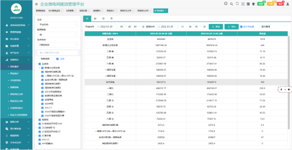 平臺具備定時(shí)抄表匯總統(tǒng)計(jì)功能,用戶可以自由查詢平臺正常運(yùn)行以來任意時(shí)間段內(nèi)各配電節(jié)點(diǎn)的用電情況。