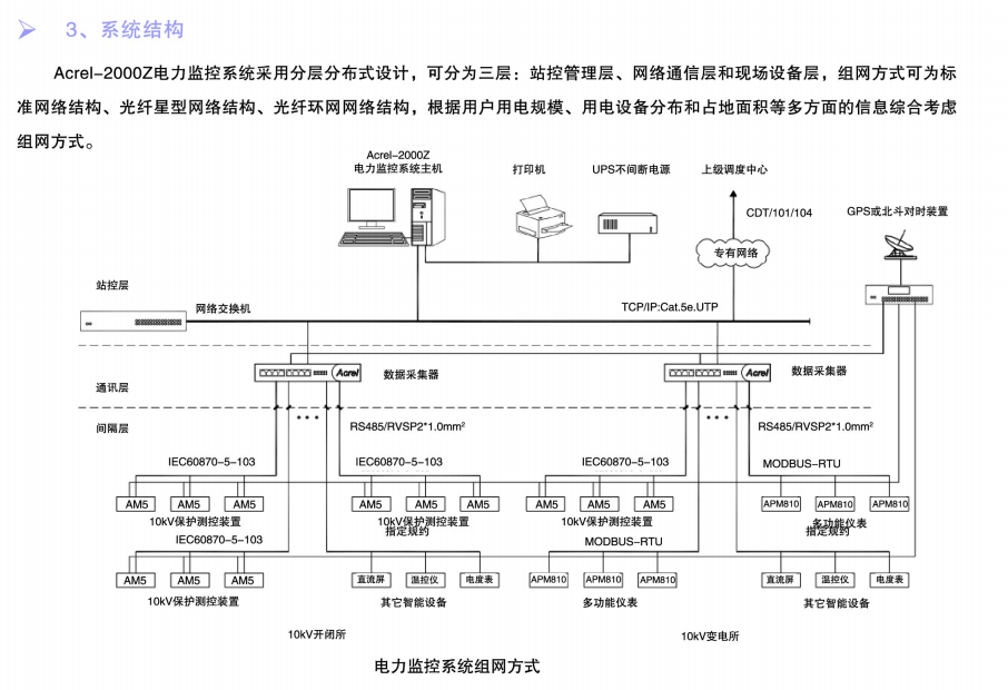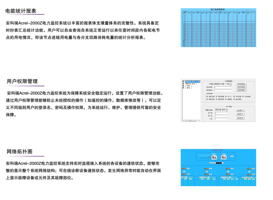 Acrel-2000Z電力監(jiān)控系統(tǒng)是安科瑞電氣股份有限公司根據(jù)電力系統(tǒng)自動(dòng)化及無人值守的要求,針對(duì)35KV及以下電壓等級(jí)研發(fā)出的一套分層分布式變電站監(jiān)控管理系統(tǒng)。該系統(tǒng)是應(yīng)用電力自動(dòng)化技術(shù)、計(jì)算機(jī)技術(shù)和信息傳輸技術(shù)、集保護(hù)、監(jiān)測(cè)、控制、通訊等多功能于一體的開放式、網(wǎng)絡(luò)化、單元化、組態(tài)化的系統(tǒng),適用于35KV及以下電壓等級(jí)的城網(wǎng)、農(nóng)網(wǎng)變電站和用戶變電站,可實(shí)現(xiàn)對(duì)變電站全方位的控制和管理,滿足變電站無人或少人值守的需求,為變電站安全、穩(wěn)定、經(jīng)濟(jì)運(yùn)行提供了堅(jiān)實(shí)的保障。